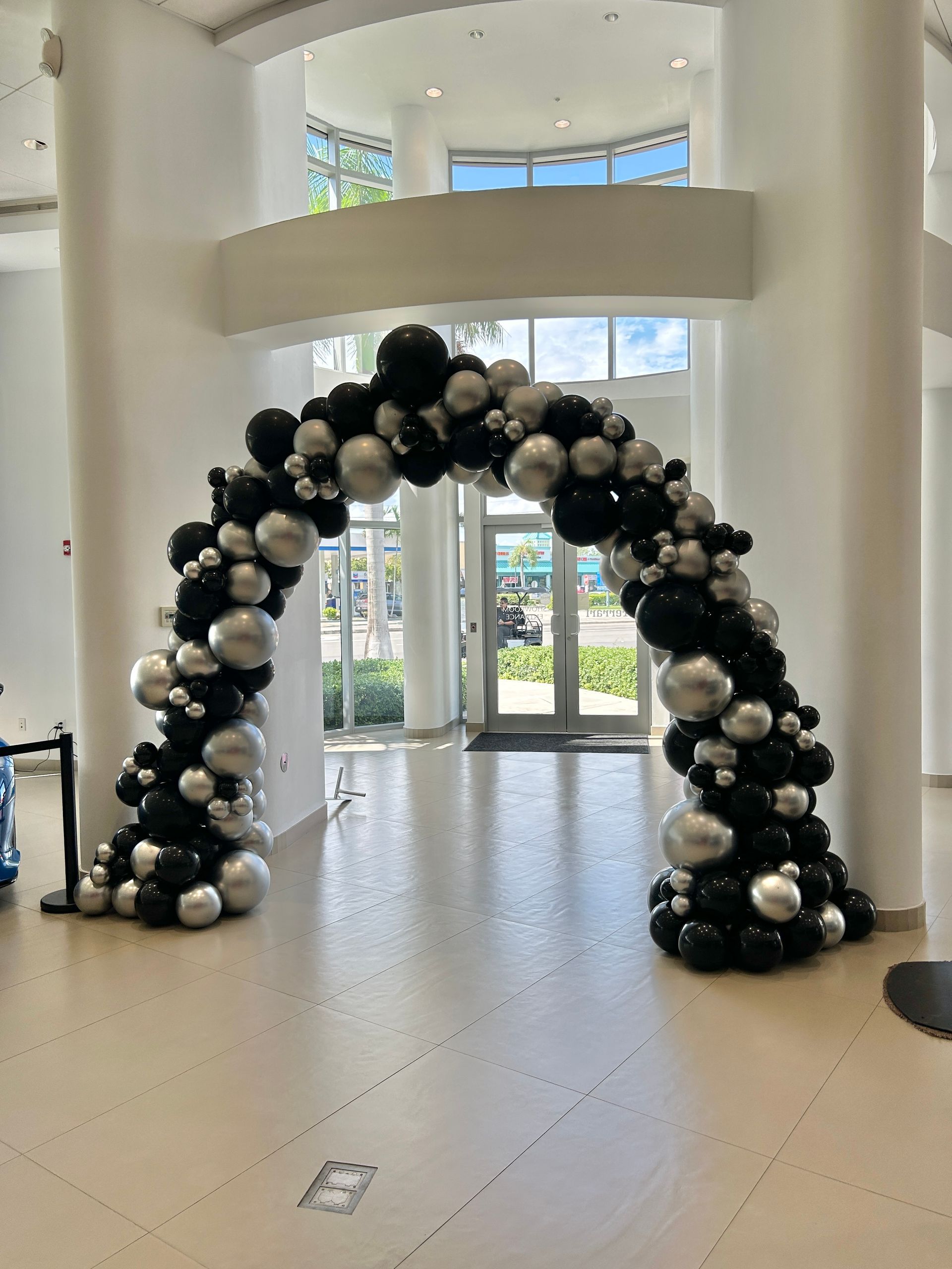 Balloon arches are a popular decoration that can be seen at events both large and small. They are perfect for drawing attention to a doorway, dance floor, stage, or stadium entrance. They also look great outdoors in a variety of settings. We can create custom balloon arches in a number of different styles, colors, and sizes, including organic designs. We can provide the design for you or you can create something yourself.