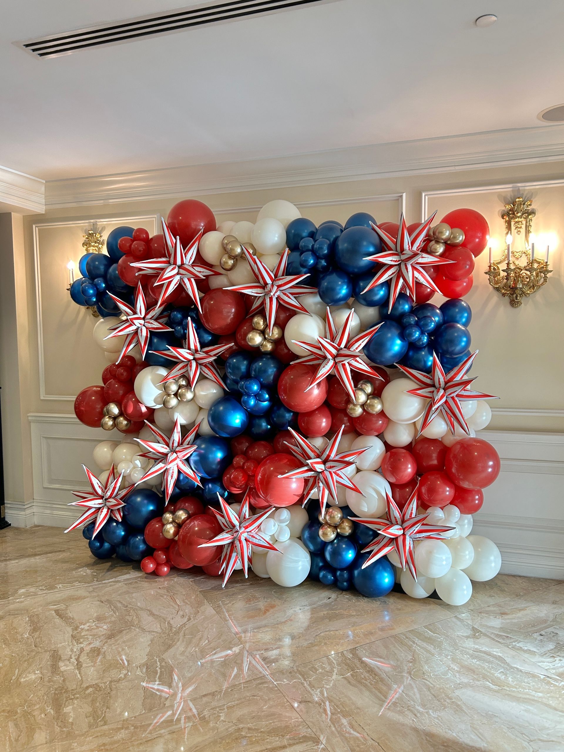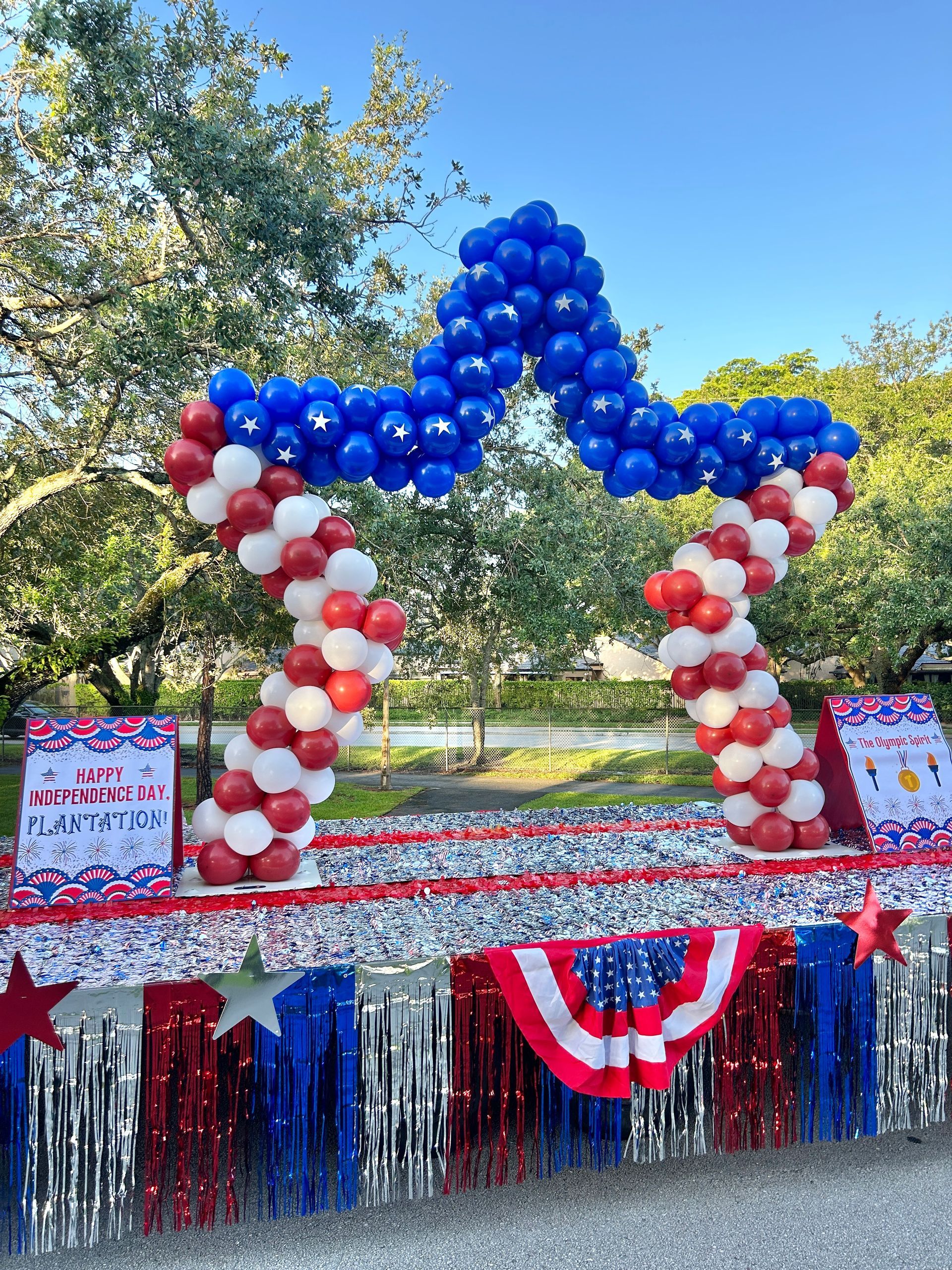 Celebrate Independence Day in style with our stunning Fourth of July balloon decor services! Whether you're hosting a backyard barbecue, a community event, or a grand fireworks display, our patriotic balloon arrangements will add a burst of festive spirit to your celebration. From red, white, and blue balloon arches and columns to star-spangled garlands and table centerpieces, our creative team designs decor that perfectly captures the excitement and pride of the holiday. Let us help you set the stage for a fun and memorable Fourth of July with vibrant balloon decorations that will wow your guests and make your event truly spectacular!